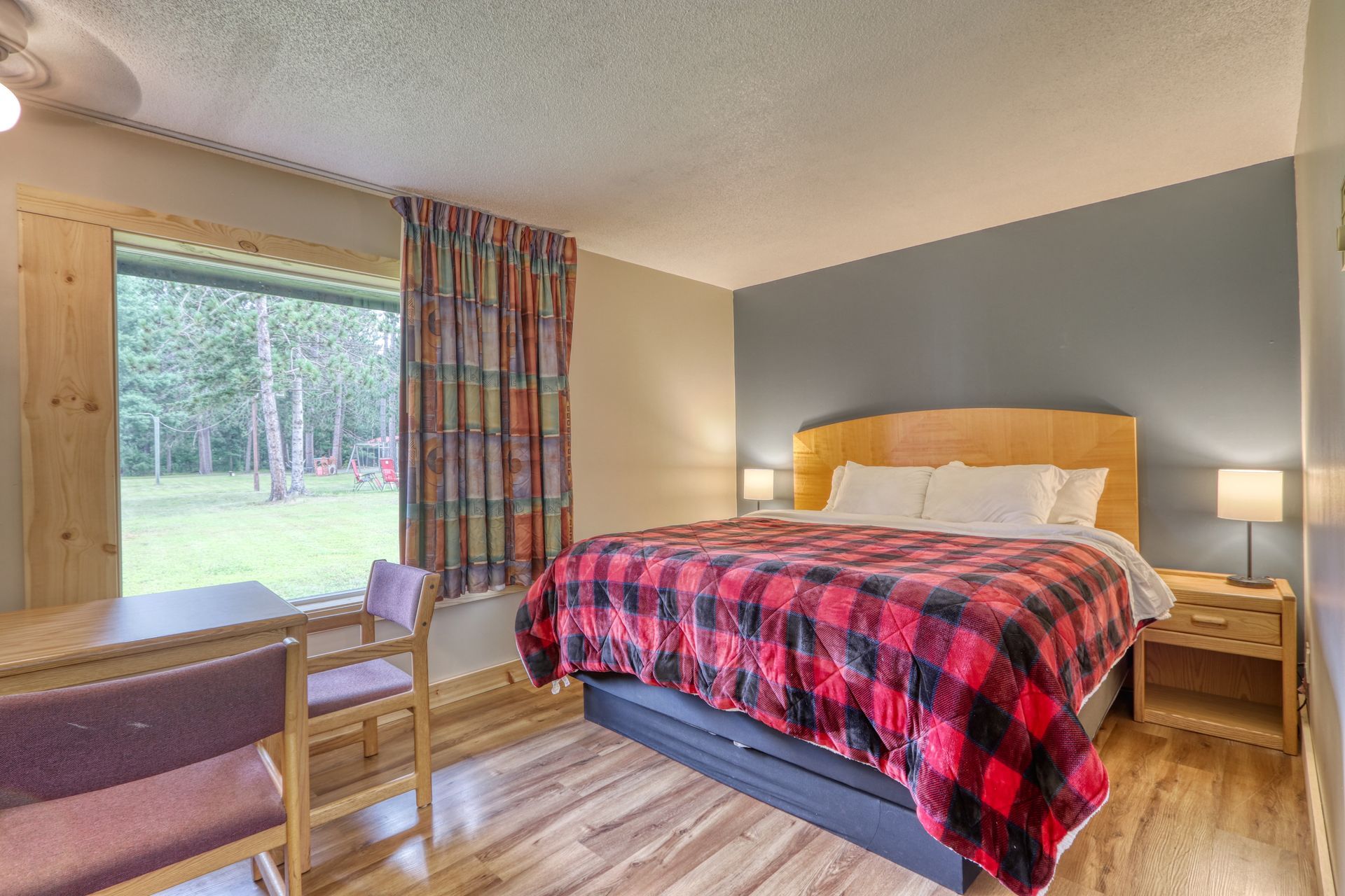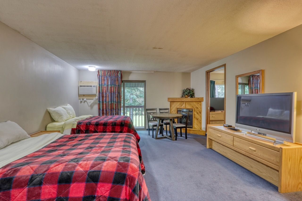 Unwind After Your Hayward Lakes Adventure: Discover Total Relaxation at Lumberjack Inn. Experience our thoughtfully designed guest rooms that embody Wisconsin’s rustic charm while offering all the modern comforts you need. From spacious King rooms perfect for couples to family-friendly Double Queen setups, each stay features premium cable TV, high-speed WiFi, and a serene environment for a rejuvenating night's sleep. Whether you're here for a weekend tournament or an extended getaway, find your ideal home away from home with us.