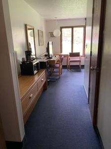 single queen room- These rooms are located in the motel section with outdoor entrances. You must walk out side to access the pool area, however shower and bathrooms are located in the pool area for guest to use.